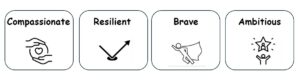 We have 4 core characteristics that we wish to develop because we know that ‘character counts’, in children and in grown ups!